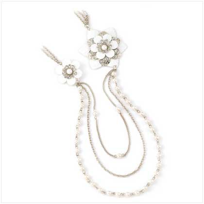 Fashion mavens around the world will agree: This is one sensational necklace! Silver strands shimmer with pearls, crystals and snow-white flower ornaments for a look no elegant lady can do without. Weight 0.1 lb. Metal, plastic and glass beads. 30 1/2" long; adjustable to 33 1/2" long.